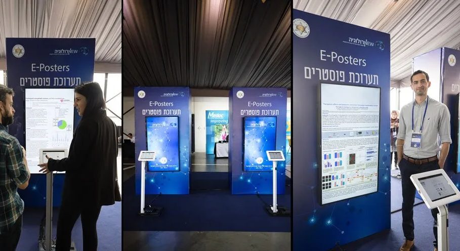 Showcase your E-Posters on interactive touchscreen monitors in the event area, elevating not only the technological aesthetics of your event but also strategically directing participant traffic to specific thematic areas.